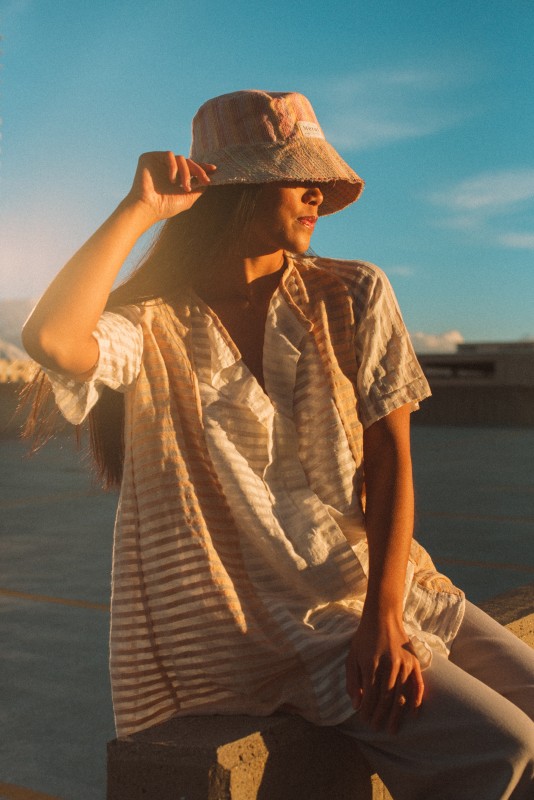 Adult buket hat brown stripes on off white