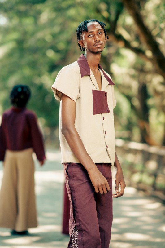 The shirt is made from machine made cotton, has a flap on the chest with a finished look when it is buttoned up.